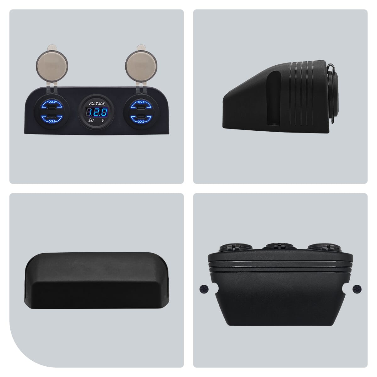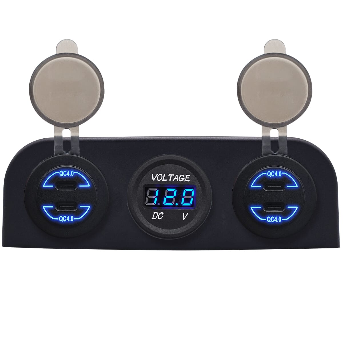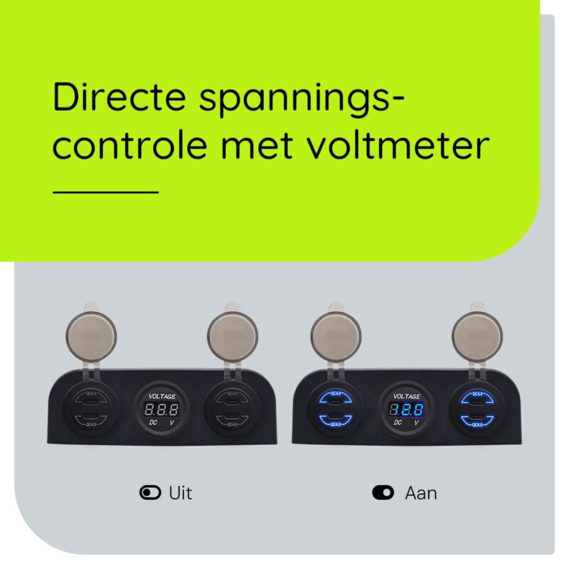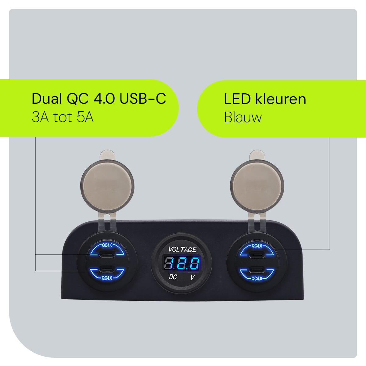 ProRide 12V USB C Autolader 4 Poorten – 30W/QC4.0 – P19185 – Drievoudig opbouw met Voltmeter
