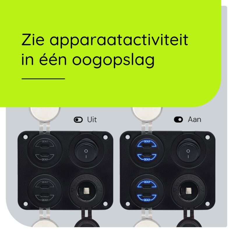 - Handige schakelaar: Met de ingebouwde schakelaar kun je de lader eenvoudig aan- en uitzetten.