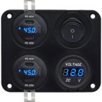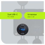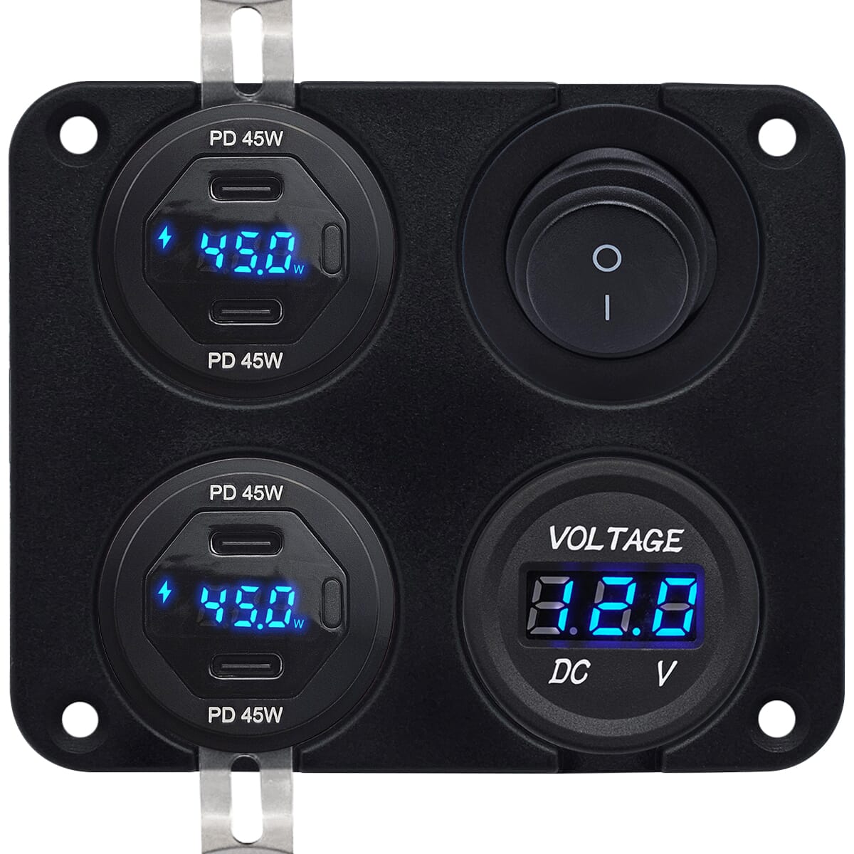 ProRide 12V USB C Autolader 4 Poorten – 45W/QC3.0 – Voltmeter en Schakelaar – Vierkant inbouw