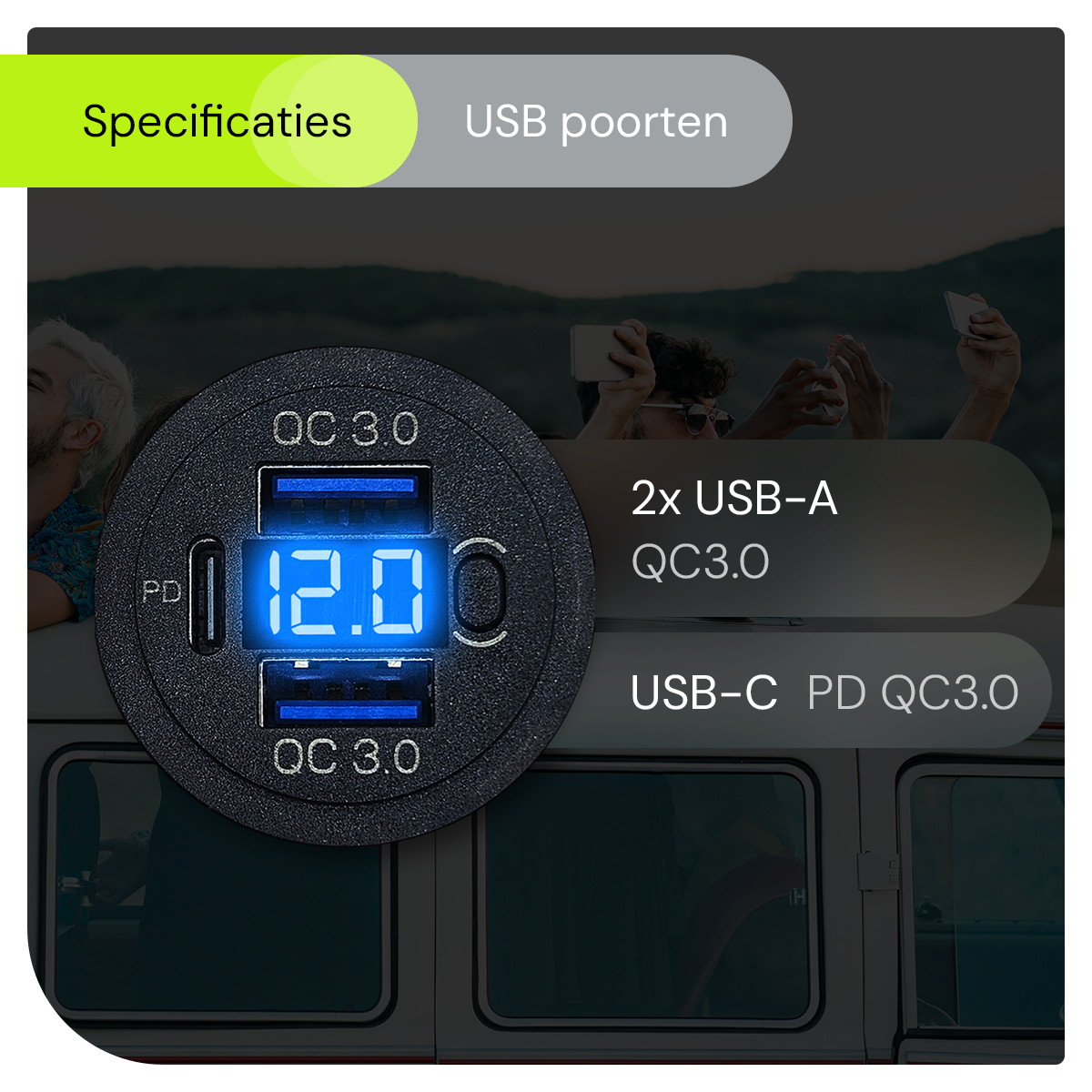 - USB Uitgang: 3 poorten, Quick Charge 3.0