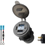 ProRide 12V USB C Stopcontact 3 Poorten Inbouw met Schakelaar/Voltmeter – QC3.0 – met Aansluitkabel 60cm en Glaszekering 10A – Blauw
