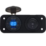 ProRide 12V USB C Stopcontact 3 Poorten Inbouw met Schakelaar/Voltmeter – QC3.0 – Tweevoudig inbouw paneel – Blauw