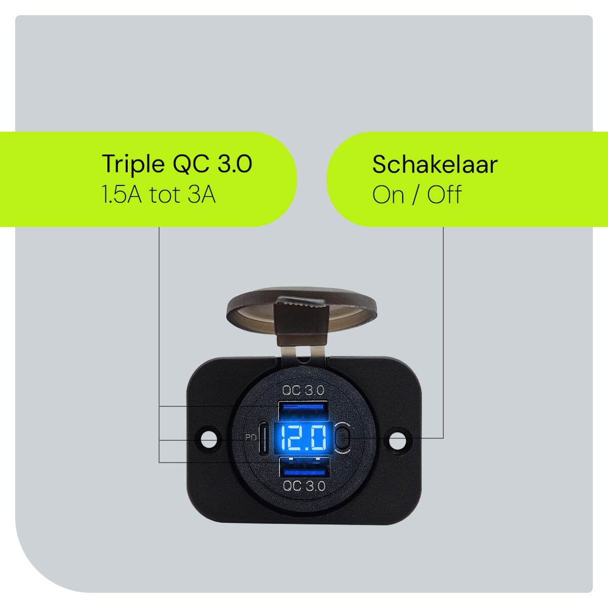 Zoek je een veelzijdige oplaadoplossing voor je voertuig? De ProRide® USB Autolader met twee poorten, schakelaar en voltmeter is de perfecte aanvulling voor je auto, vrachtwagen, boot, caravan of camper. Deze krachtige lader ondersteunt Quick Charge 3.0, waardoor je apparaten sneller opgeladen zijn.