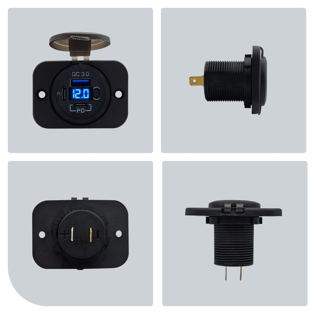Monteer de autolader op een geschikte plaats in je voertuig en sluit deze aan op een 12V bron. Gebruik de USB-poorten om je apparaten op te laden en de schakelaar om de stroomtoevoer naar de lader te regelen. De voltmeter activeert automatisch om je real-time informatie over de staat van de accu te geven.