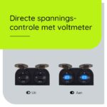 - Extra functies: Schakelaar en ingebouwde voltmeter