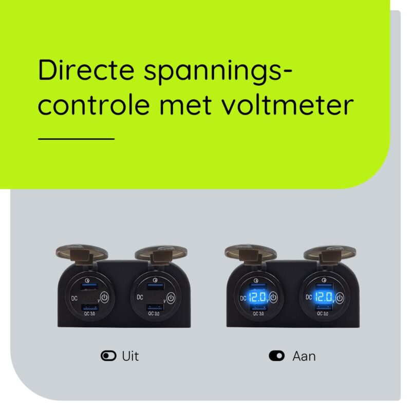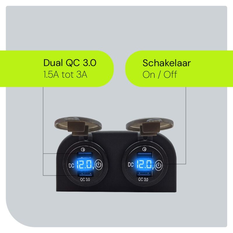ProRide® 12V USB Boot-, camper en autolader met schakelaar – Tweevoudig opbouw