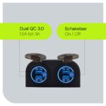 ProRide® 12V USB Boot-, camper en autolader met schakelaar – Tweevoudig opbouw