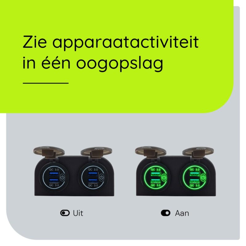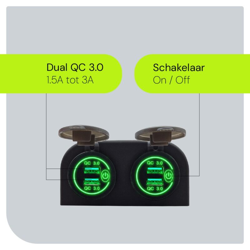 ProRide® 12V USB Boot-, camper en autolader met schakelaar – Tweevoudig opbouw