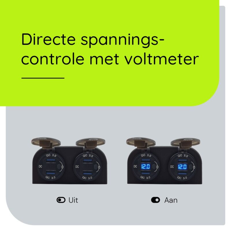 - Extra functies: Schakelaar en ingebouwde voltmeter