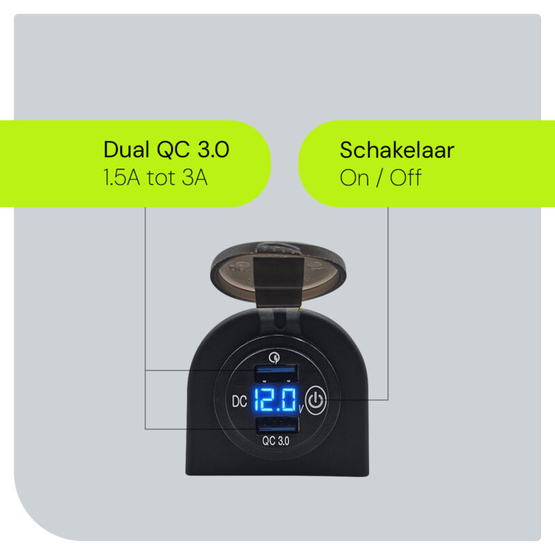 Zoek je een veelzijdige oplaadoplossing voor je voertuig? De ProRide® USB Autolader met drie poorten, schakelaar en voltmeter is de perfecte aanvulling voor je auto, vrachtwagen, boot, camper of caravan. Deze krachtige lader ondersteunt Quick Charge 3.0, waardoor je apparaten sneller opgeladen zijn.