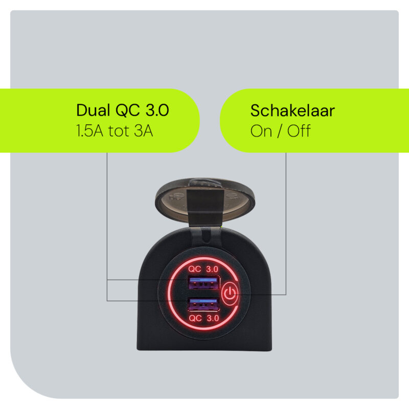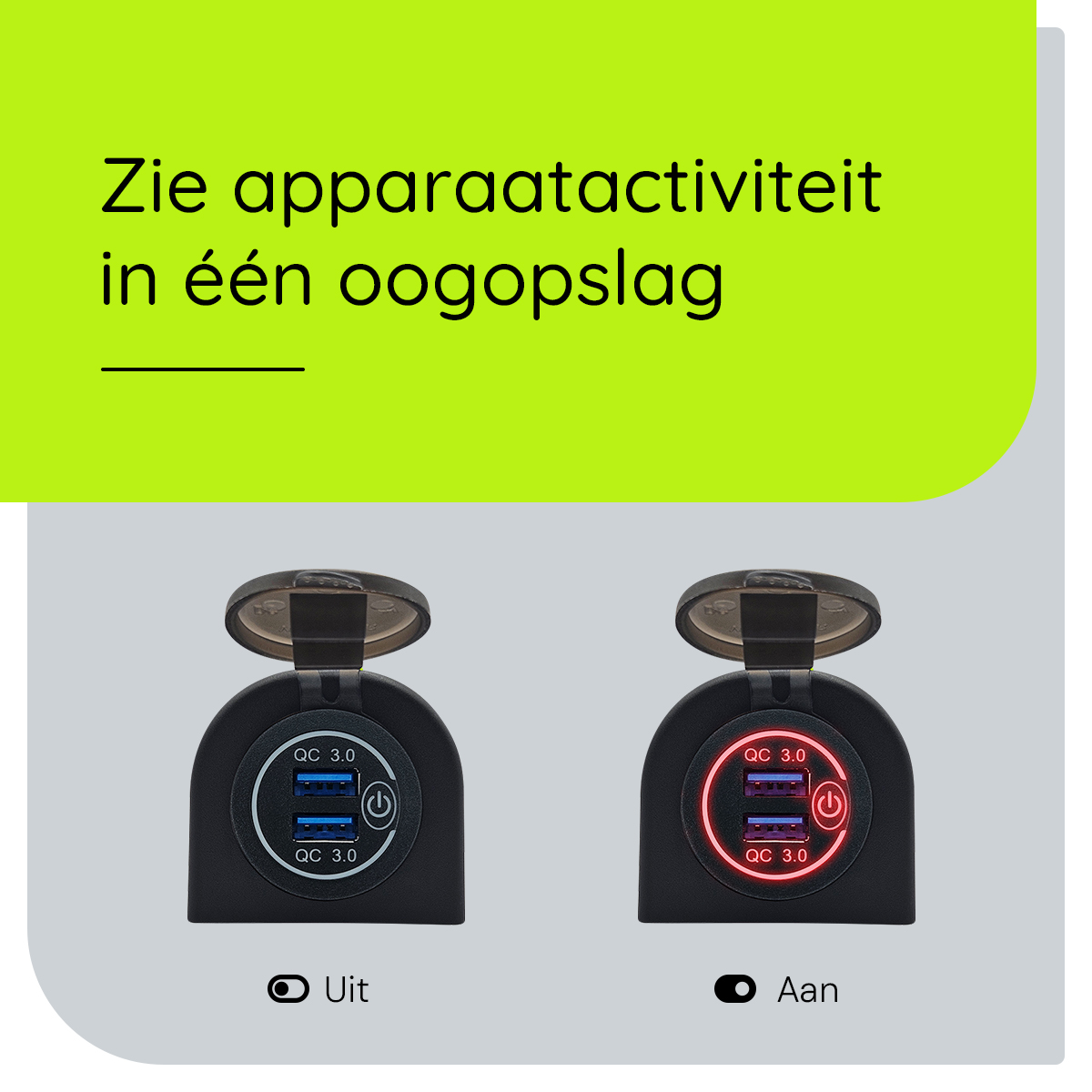 ProRide® 12V USB Boot-, camper en autolader met schakelaar – Enkelvoudig opbouw