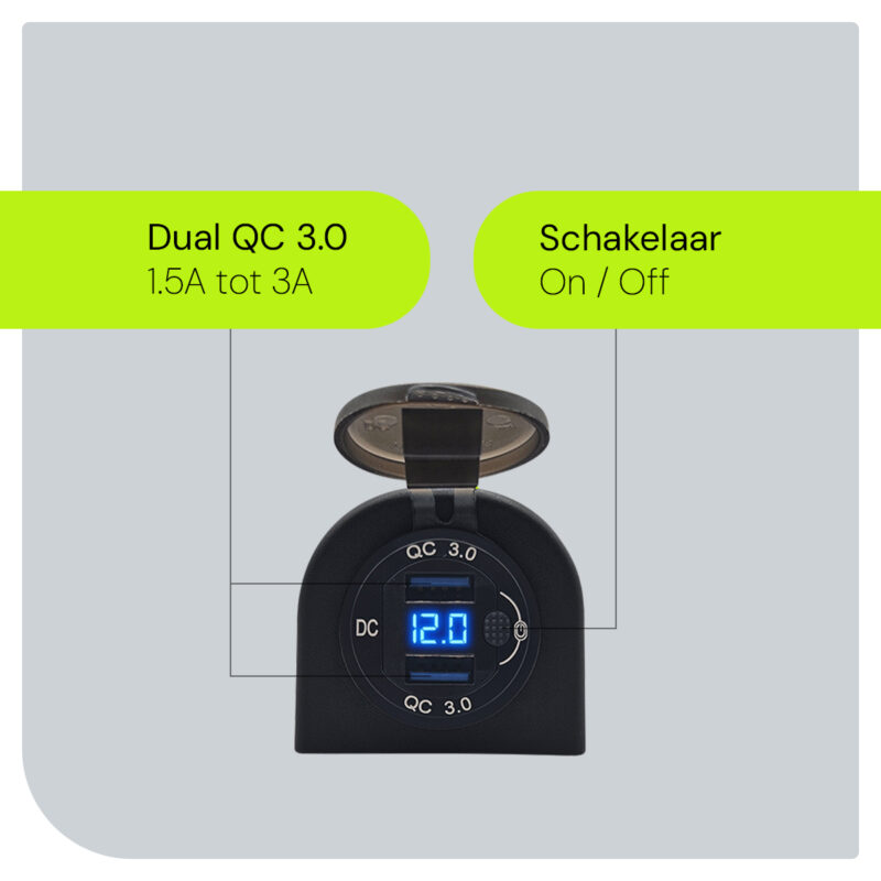 Zoek je een veelzijdige oplaadoplossing voor je voertuig? De ProRide® USB Autolader met twee poorten, schakelaar en voltmeter is de perfecte aanvulling voor je auto, vrachtwagen, boot, camper of caravan. Deze krachtige lader ondersteunt Quick Charge 3.0, waardoor je apparaten sneller opgeladen zijn.
