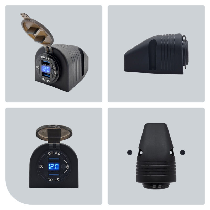 Monteer de autolader op een geschikte plaats in je voertuig en sluit deze aan op een 12V bron. Gebruik de USB-poorten om je apparaten op te laden en de schakelaar om de stroomtoevoer naar de lader te regelen. De voltmeter activeert automatisch om je real-time informatie over de staat van de accu te geven.