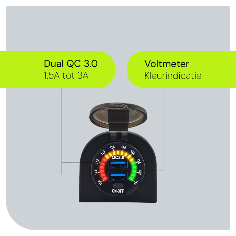Zoek je een veelzijdige oplaadoplossing voor je voertuig? De ProRide® USB Autolader met twee poorten, schakelaar en voltmeter is de perfecte aanvulling voor je auto, vrachtwagen, boot, camper of caravan. Deze krachtige lader ondersteunt Quick Charge 3.0, waardoor je apparaten sneller opgeladen zijn.