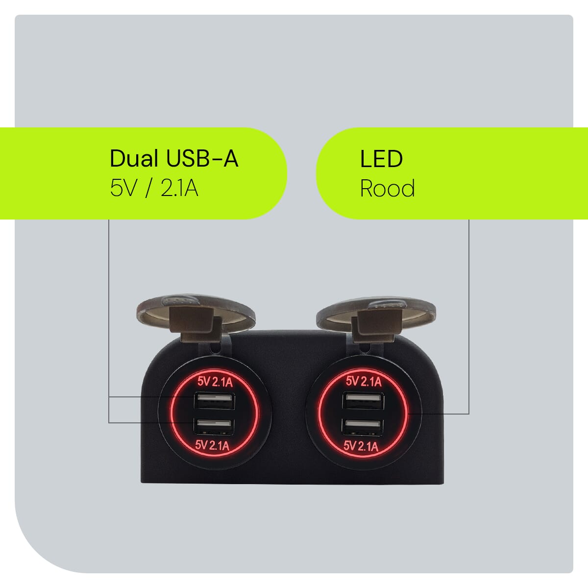 ProRide® 12V USB Boot-, camper en autolader – Tweevoudig opbouw