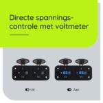 - Extra functies: Schakelaar en ingebouwde voltmeter