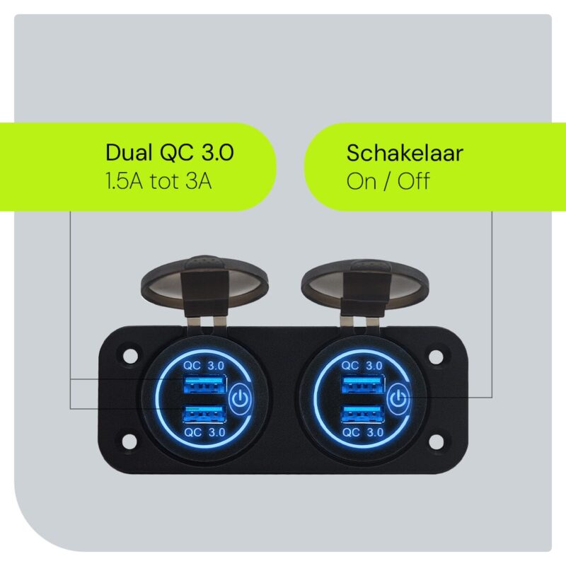ProRide® 12V USB Boot-, camper en autolader met schakelaar – Tweevoudig inbouw