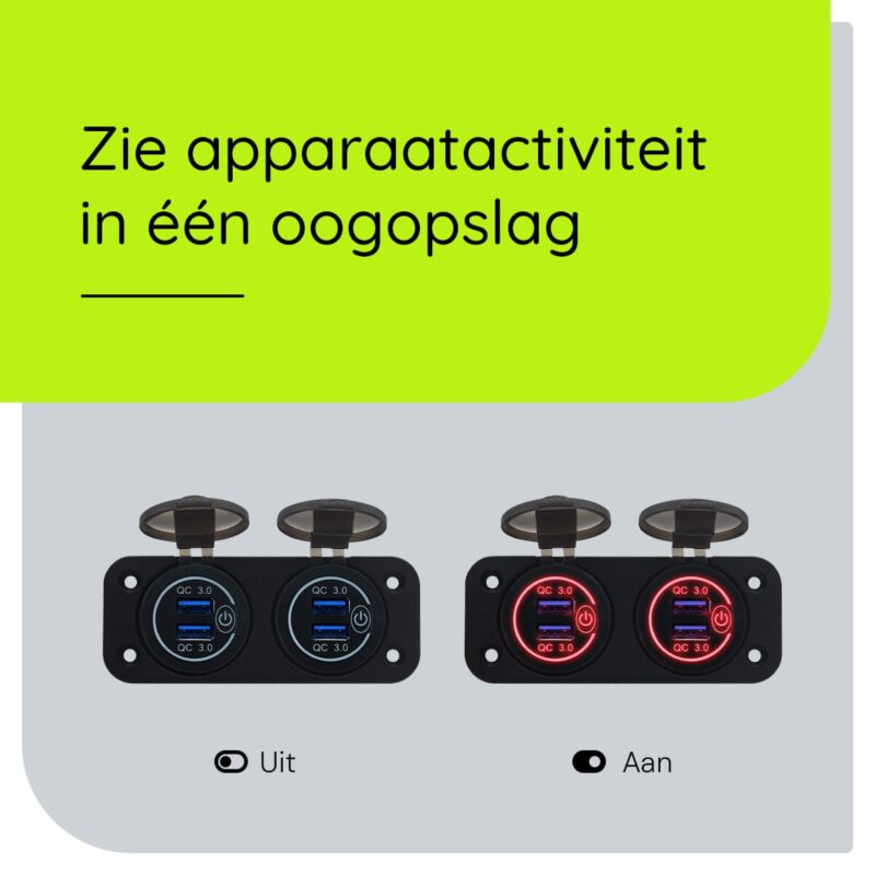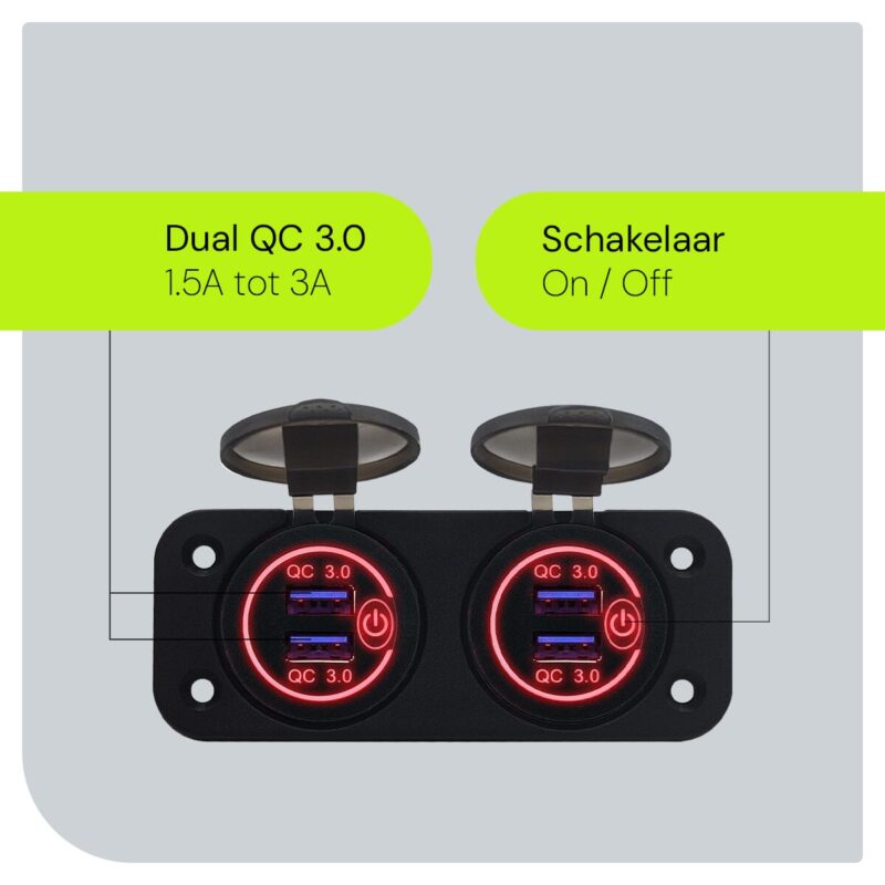 ProRide® 12V USB Boot-, camper en autolader met schakelaar – Tweevoudig inbouw