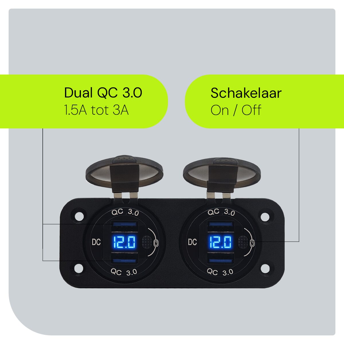ProRide® 12V USB Boot-, camper en autolader met schakelaar – Tweevoudig inbouw
