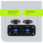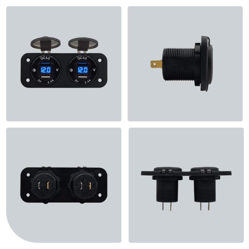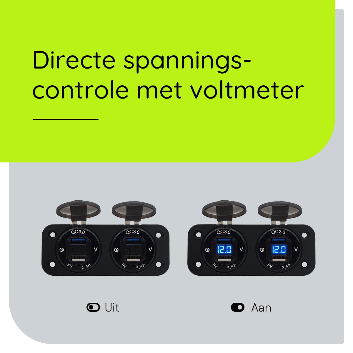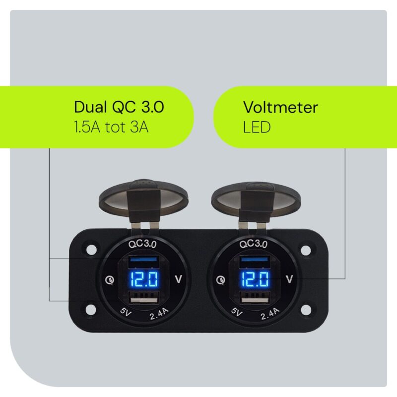 ProRide® 12V USB Boot-, camper en autolader met voltmeter – Tweevoudig inbouw