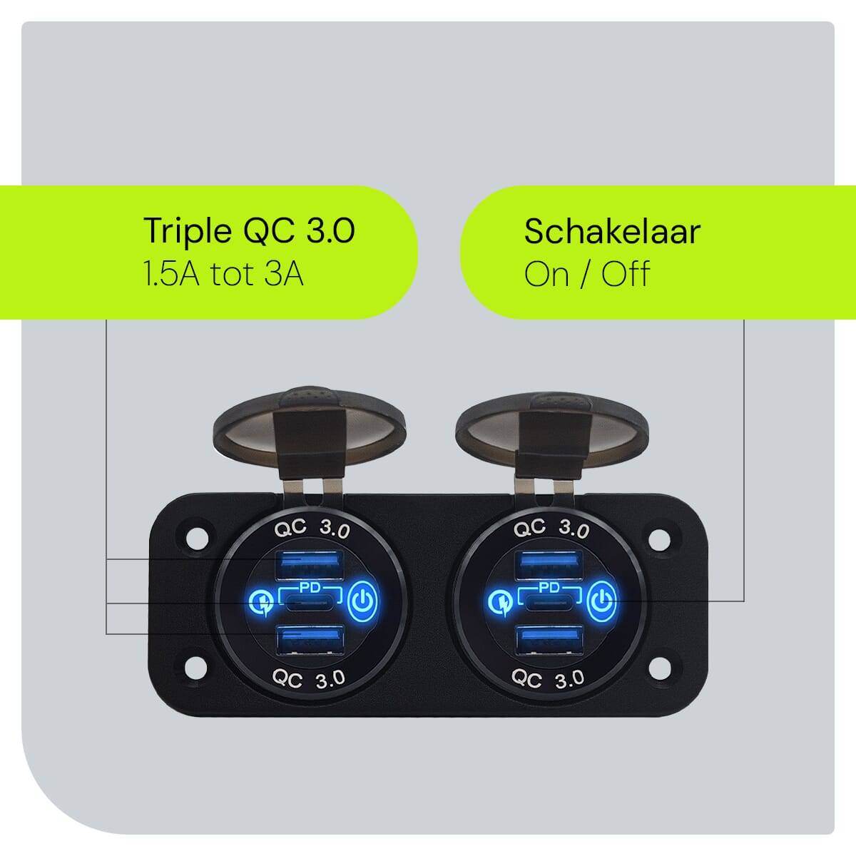 ProRide® 12V USB Boot-, camper en autolader met schakelaar – Tweevoudig inbouw