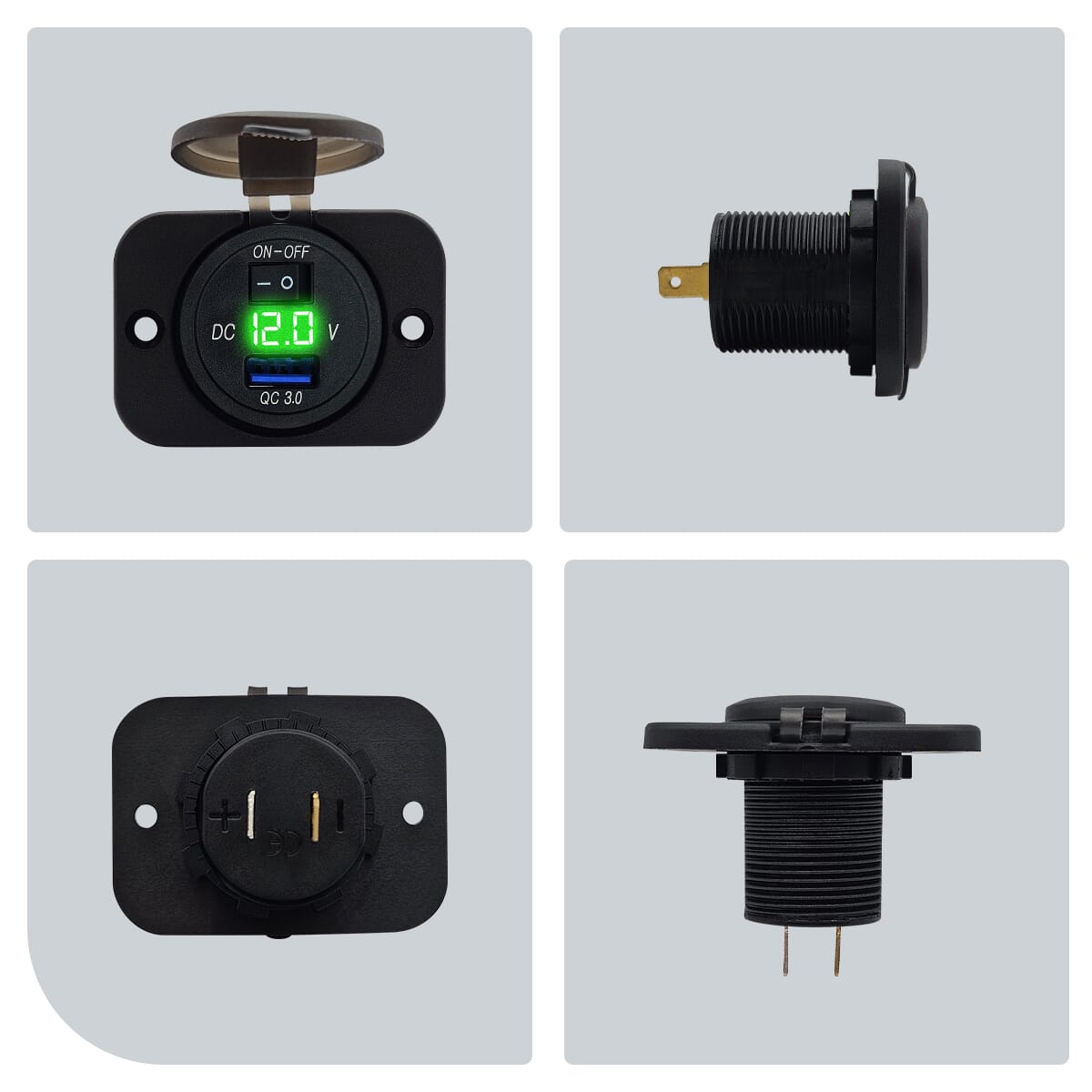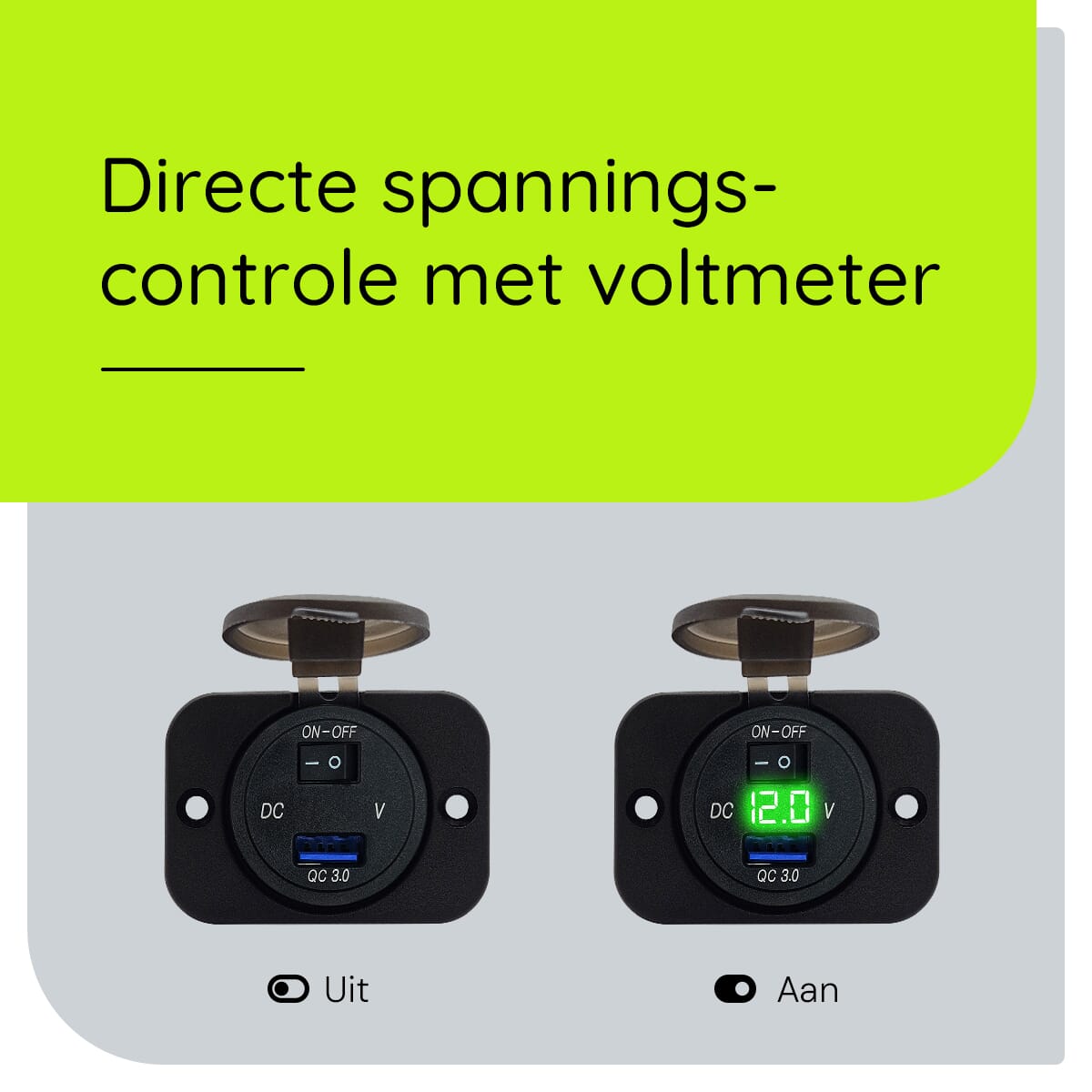 Installeer de autolader op een geschikte locatie binnen je voertuig en sluit deze aan op de 12V voedingsbron. Gebruik de USB-poort om je apparaten op te laden en schakel de stroom naar de lader uit wanneer deze niet in gebruik is om energie te besparen. De voltmeter geeft de huidige accustatus aan.