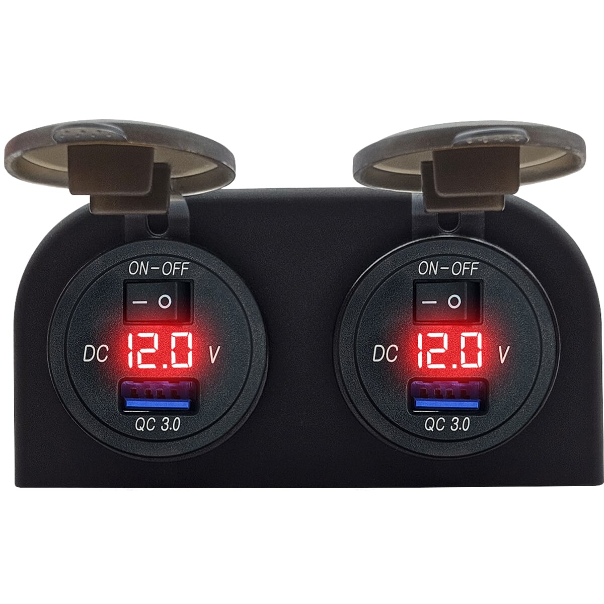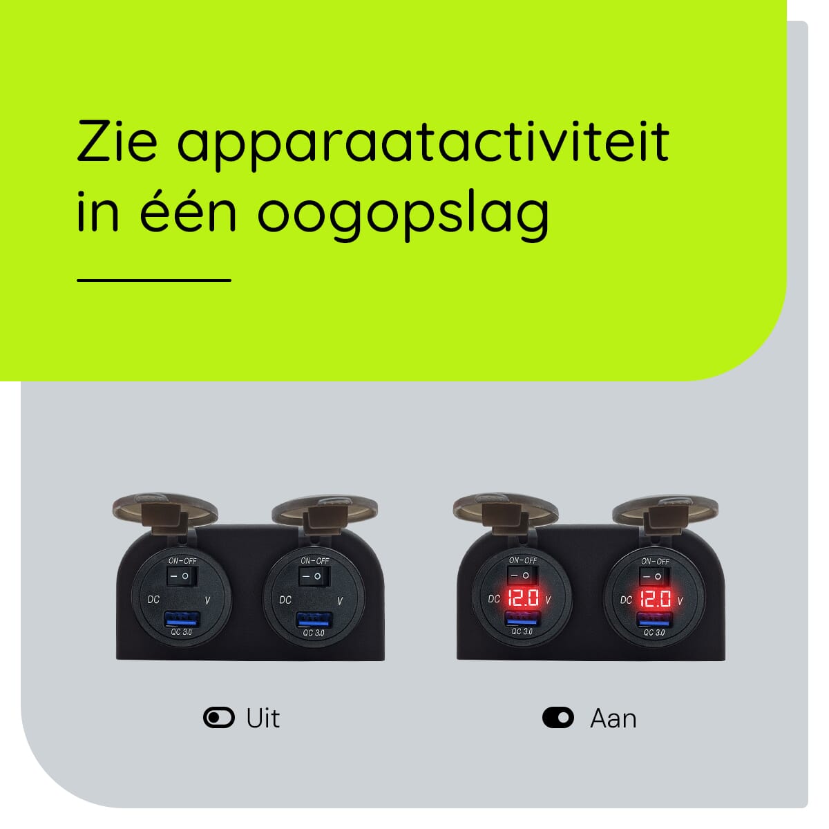 ProRide® 12V USB Boot-, camper en autolader met schakelaar – Tweevoudig opbouw