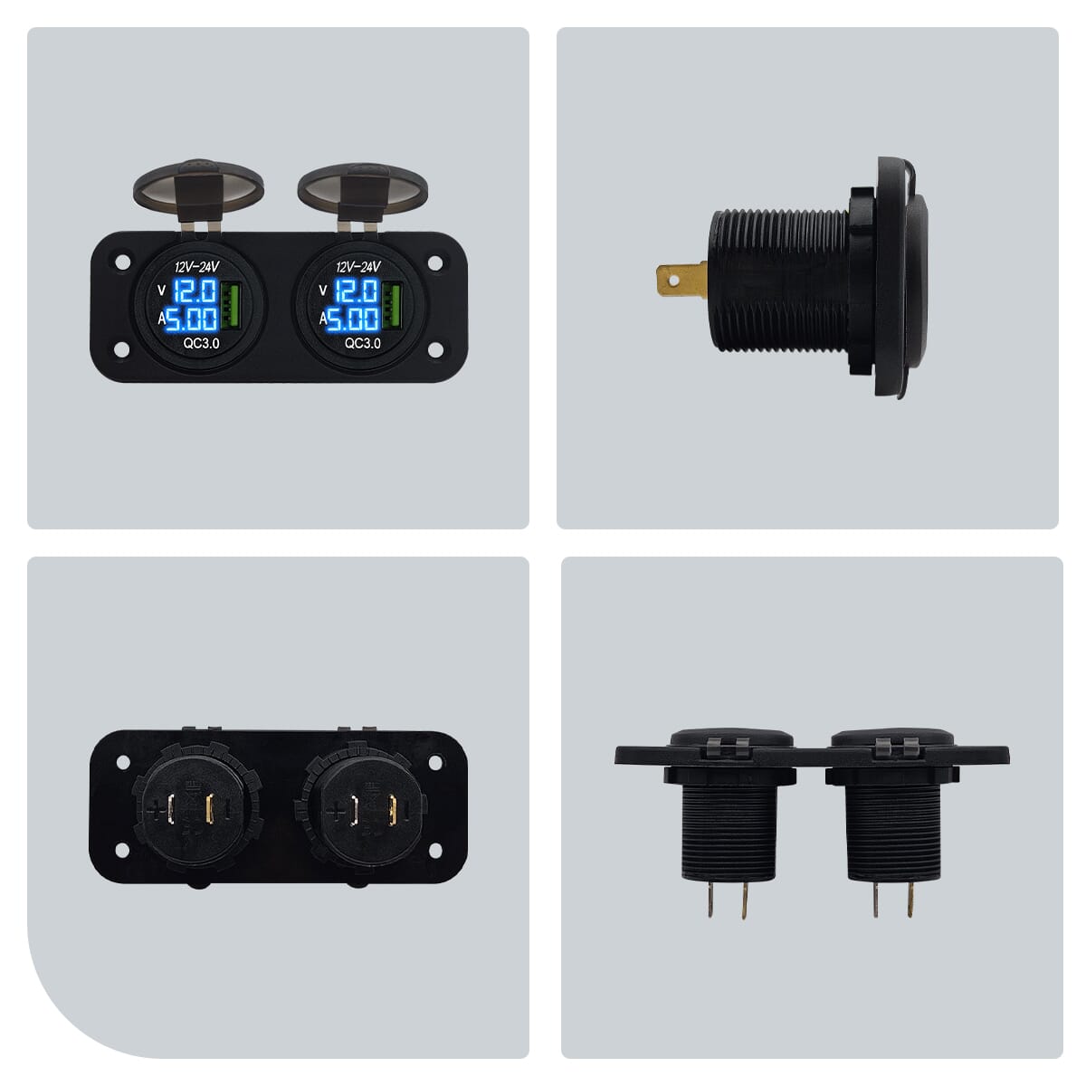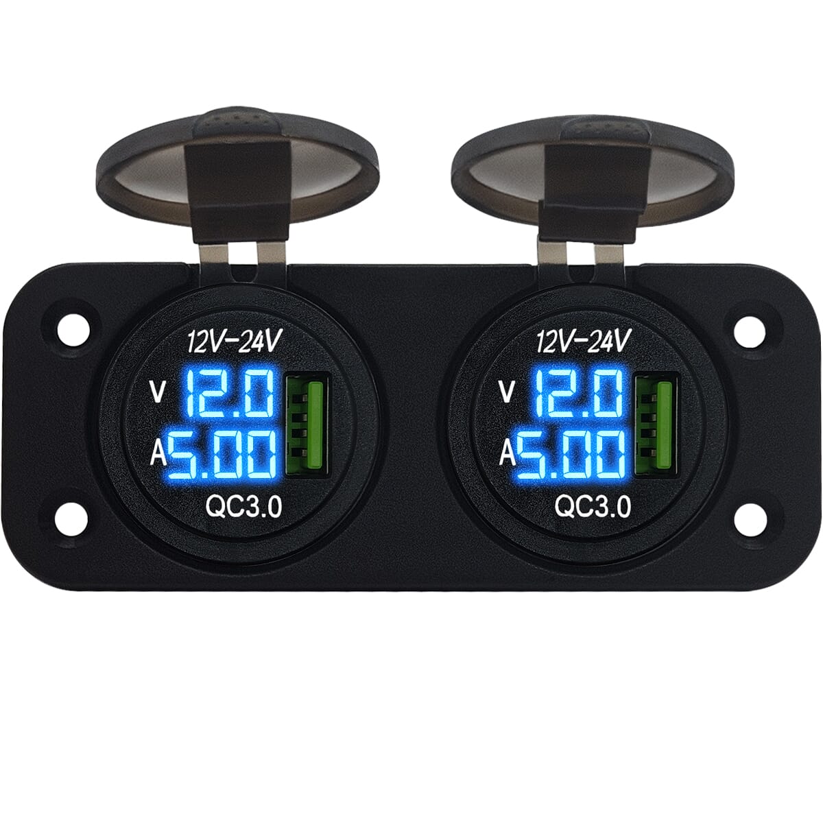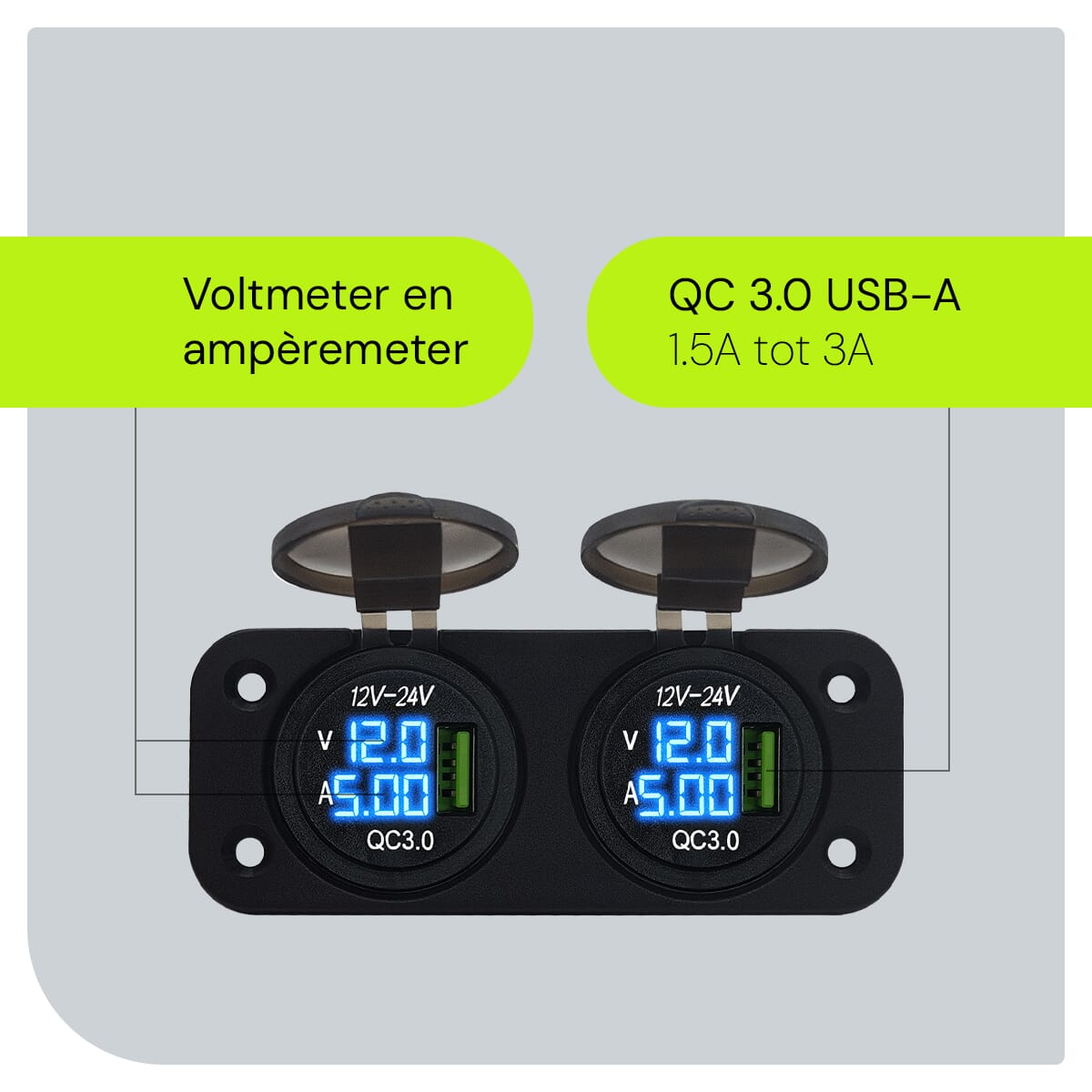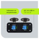 ProRide® 12V USB Boot-, camper en autolader met voltmeter/ampèremeter – Tweevoudig inbouw