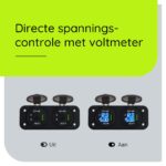 - Monitoring: Houd de gezondheid van je voertuig’s batterij in de gaten met de ingebouwde voltmeter en ampèremeter.