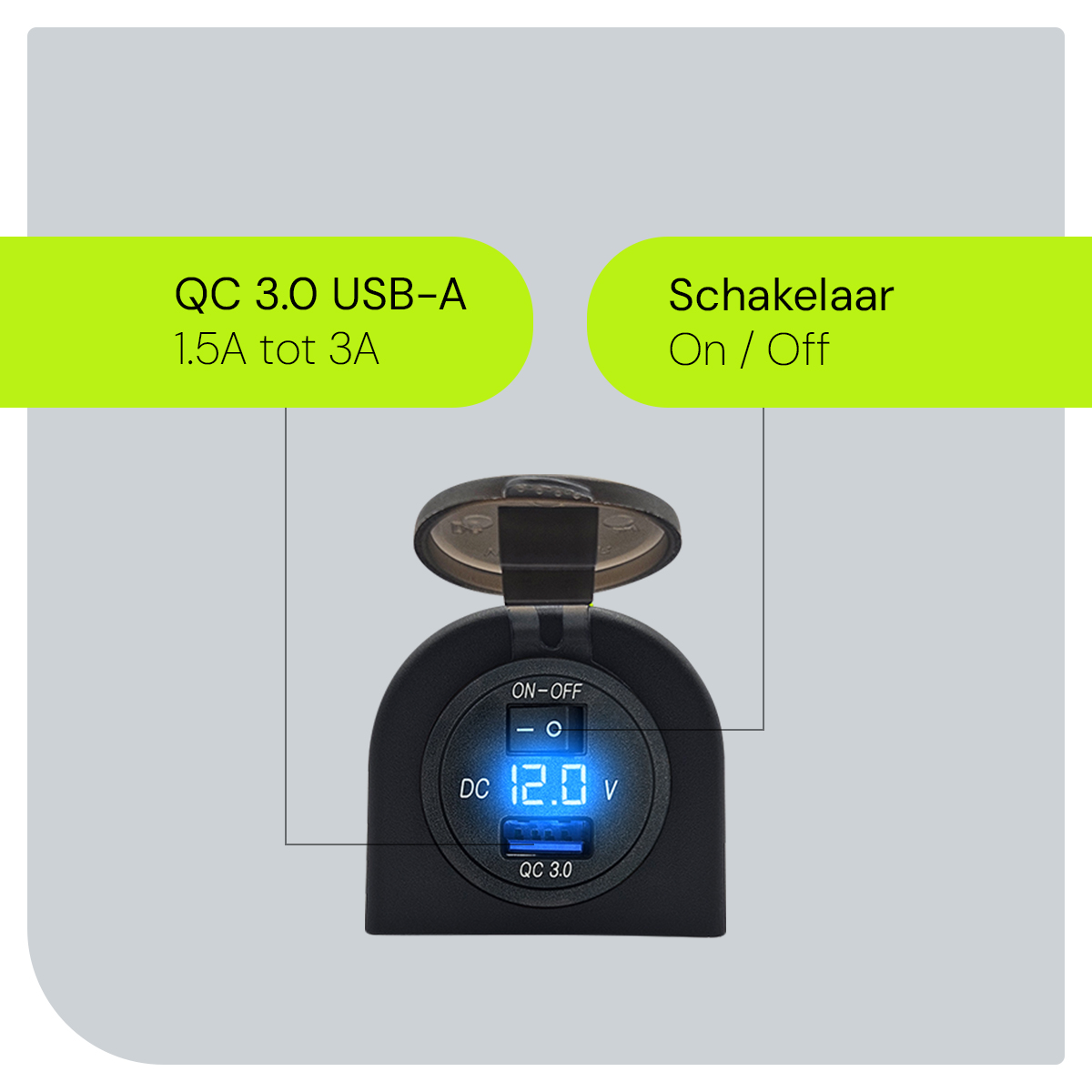 ProRide® 12V USB Boot-, camper en autolader met schakelaar – Enkelvoudig opbouw
