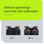 - Extra functies: Schakelaar en ingebouwde voltmeter