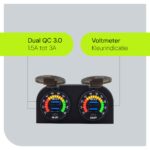 Monteer de autolader op een geschikte plaats in je voertuig en sluit deze aan op een 12V bron. Gebruik de USB-poorten om je apparaten op te laden en de schakelaar om de stroomtoevoer naar de lader te regelen. De voltmeter activeert automatisch om je real-time informatie over de staat van de accu te geven.