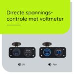 Dit tweevoudige inbouw paneel is ideaal voor diverse voertuigen zoals auto’s, campers en boten. Het biedt een betrouwbare stroombron, ongeacht waar je bent, zodat je altijd verbonden blijft.