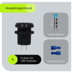 - Is dit stopcontact waterdicht? Nee, het ProRide 12V USB/USB C Stopcontact is niet waterdicht en moet daarom op een droge plek worden geïnstalleerd.