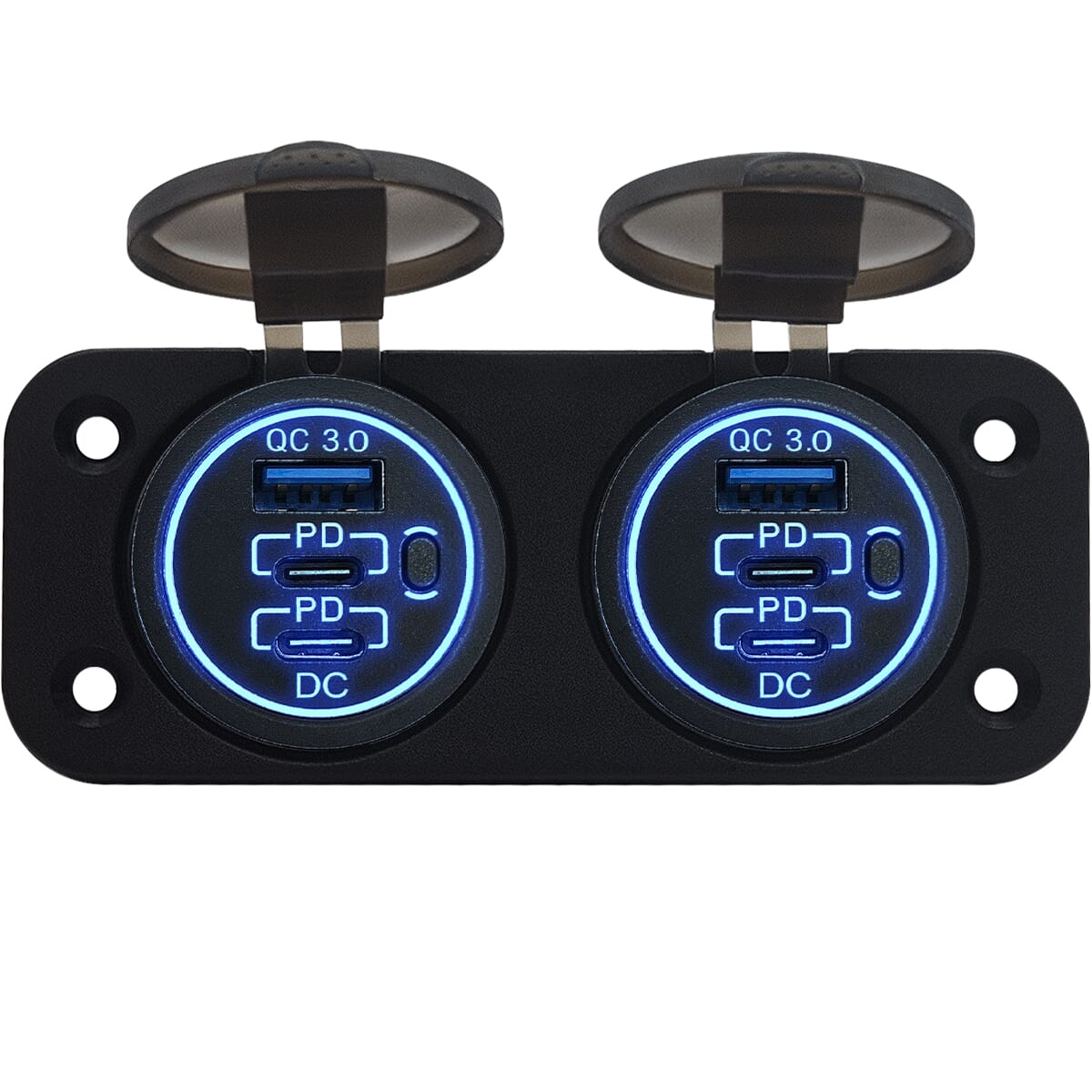 - Aantal poorten: 2× USB-A (QC3.0) + 2× USB-C (PD) verdeeld over 2 modules