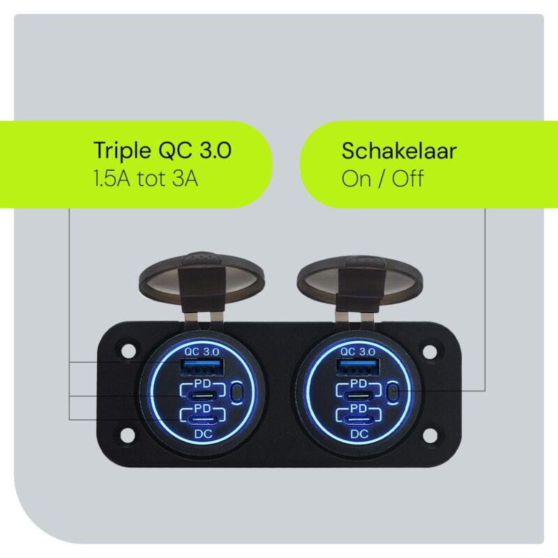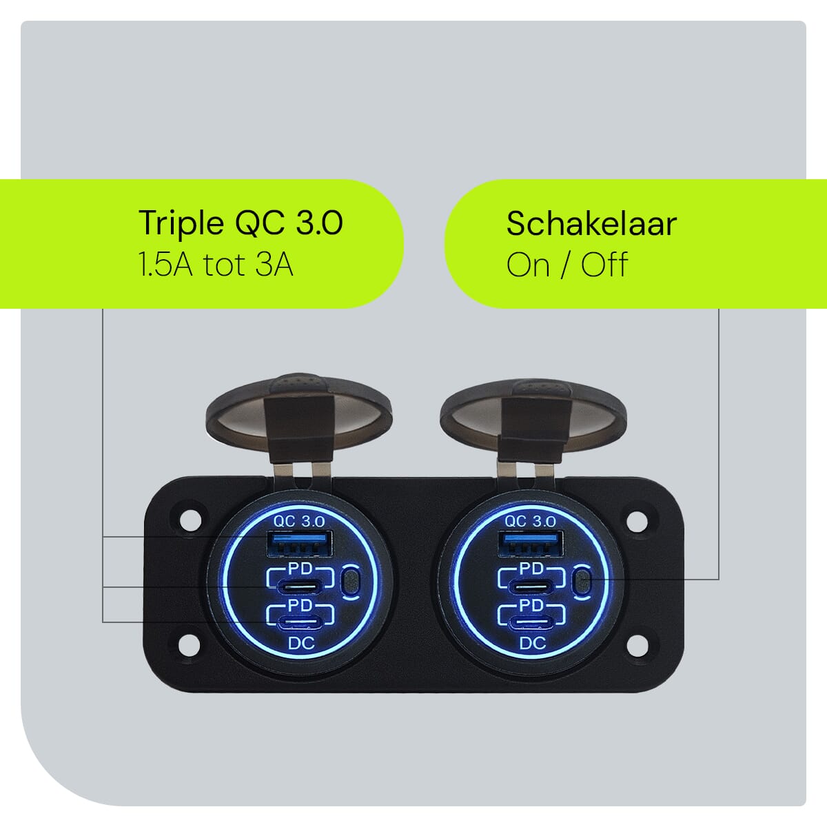 Zoek je een veelzijdige oplaadoplossing voor je voertuig? Deze ProRide USB inbouwlader met schakelaar biedt snelle en veilige laadpoorten voor auto, vrachtwagen, boot, caravan en camper. De lader ondersteunt Quick Charge 3.0 en heeft zowel USB-A als USB-C (PD) aansluitingen.