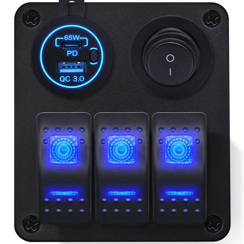 ProRide Schakelpaneel 12V voor Auto/Boot – USB C Lader 2 poorten met Schakelaar – 65W/QC3.0 – 3 schakelaars