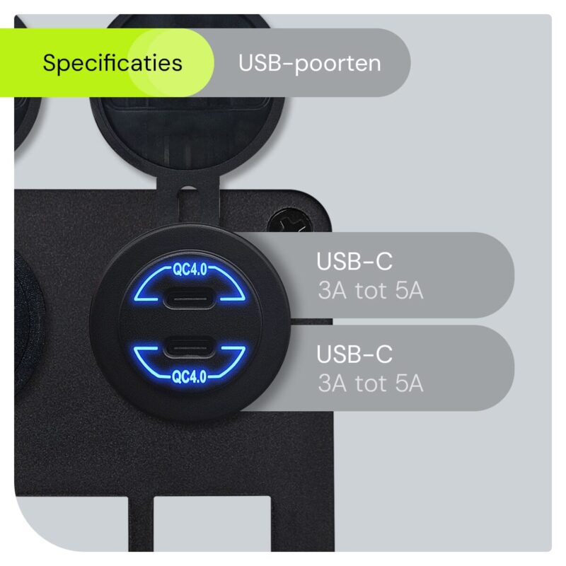 Dankzij de 30W en QC4.0 technologie kun je erop vertrouwen dat je apparaten snel en efficiënt worden opgeladen. Dit betekent minder wachttijd en meer tijd om te genieten van je reis. De krachtige prestaties maken dit schakelpaneel ideaal voor zowel korte ritten als lange reizen.