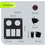 ProRide Schakelpaneel 12V voor Auto/Boot – USB Lader 2 Poorten met Schakelaar – 5V/2.1A – 3 schakelaars