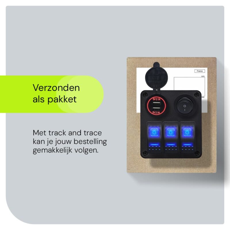 Het ProRide Schakelpaneel 12V is ontworpen om meerdere functies te combineren in één compact apparaat. Met drie schakelaars en twee USB-poorten (5V/2.1A) kun je eenvoudig verschillende elektrische systemen bedienen en tegelijkertijd je apparaten opladen. Dit maakt het schakelpaneel ideaal voor zowel auto’s als boten.