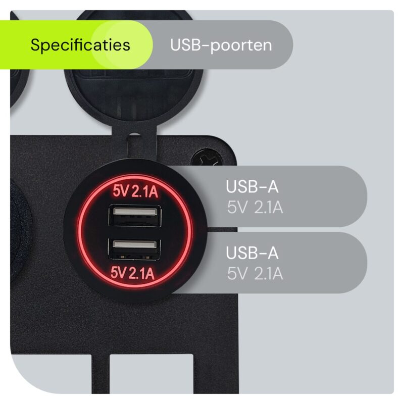 - Wat is de maximale stroomsterkte van de USB-poorten? De USB-poorten hebben een maximale output van 5V/2.1A, wat ideaal is voor het snel opladen van je apparaten.