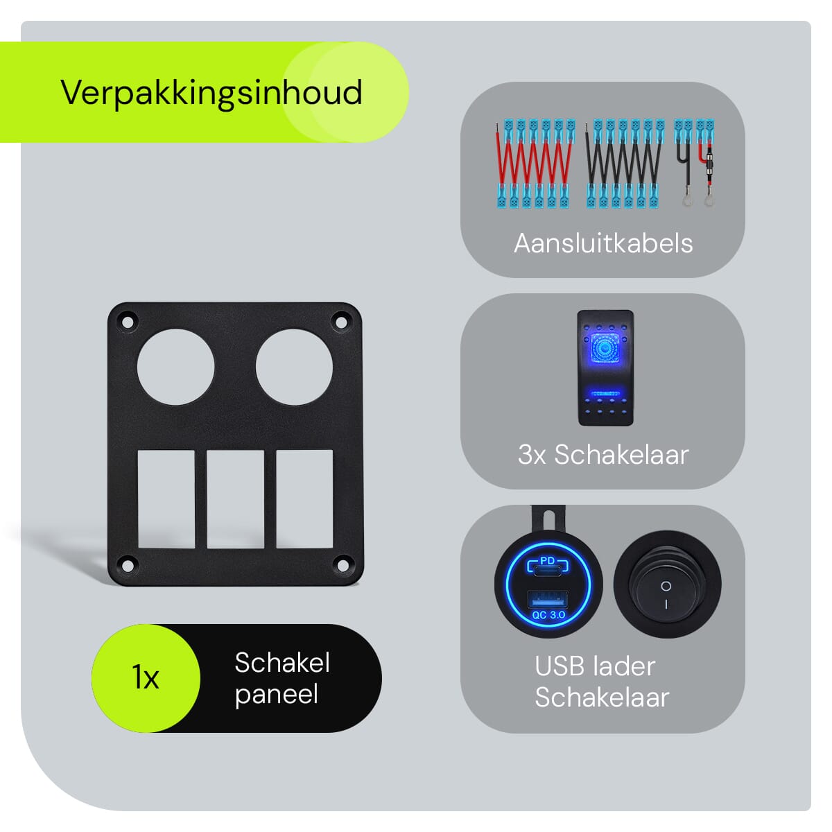 ProRide Schakelpaneel 12V voor Auto/Boot – USB Lader 2 poorten met Schakelaar – QC3.0 – 3 schakelaars