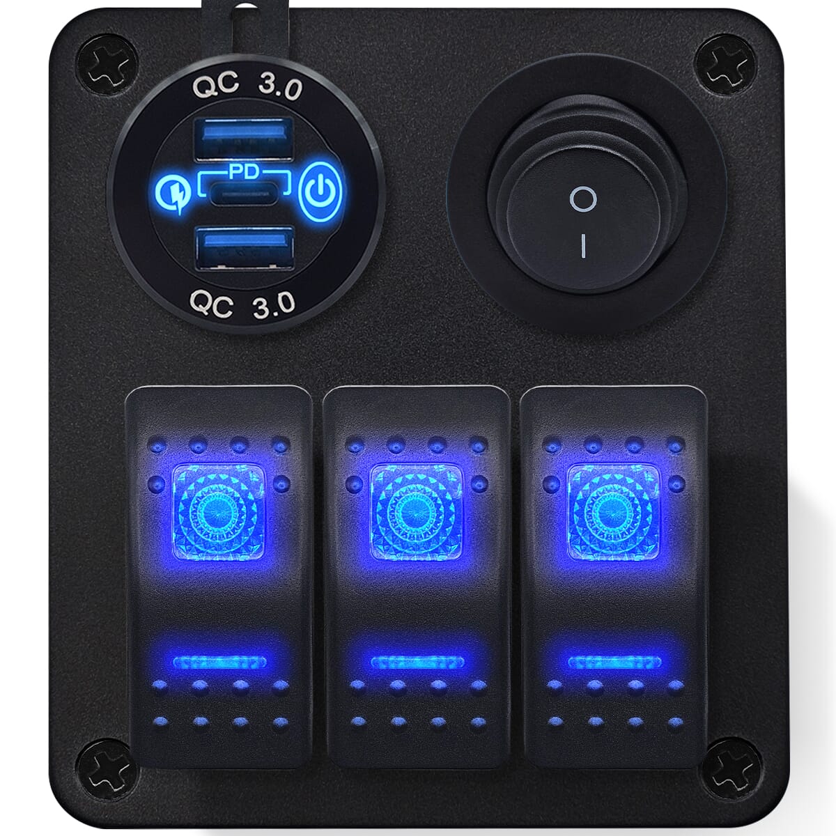 Met drie afzonderlijke schakelaars kun je eenvoudig verschillende elektrische systemen in je voertuig bedienen. Of het nu gaat om verlichting, een koelbox of andere accessoires, je hebt altijd de controle binnen handbereik.