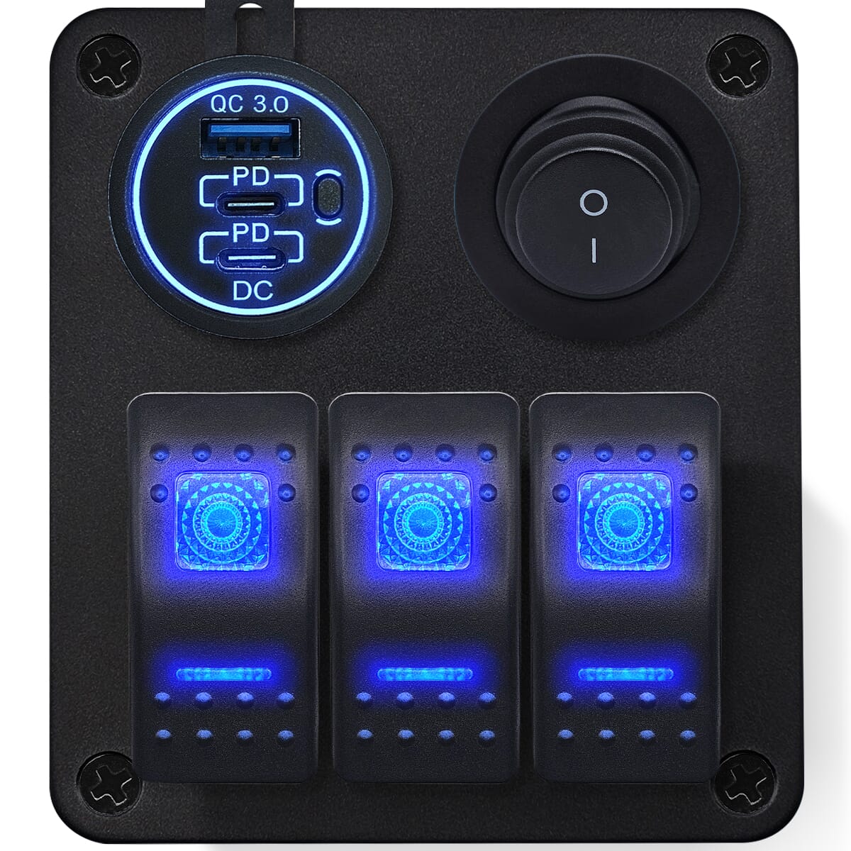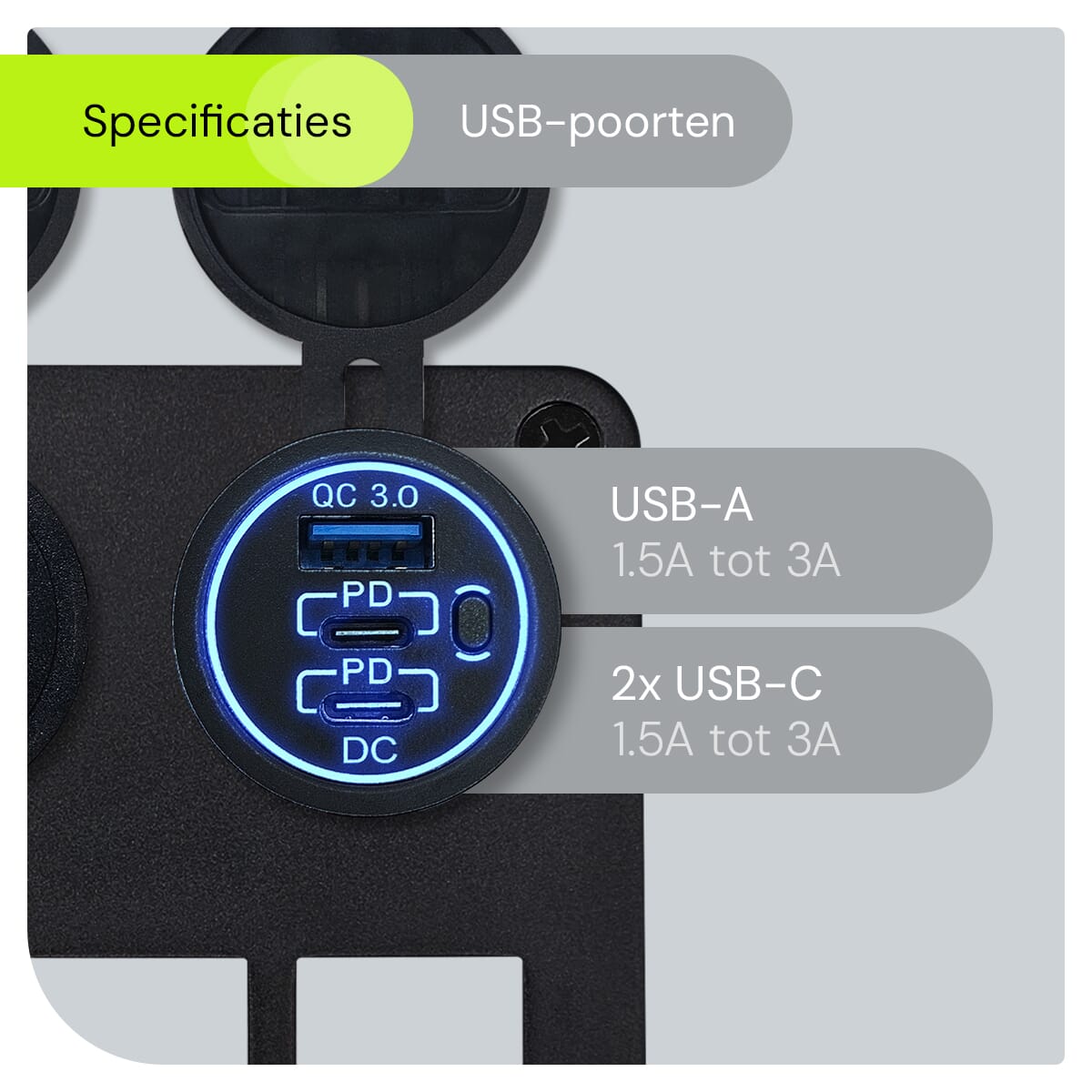 ProRide Schakelpaneel 12V voor Auto/Boot – USB/USB C Lader 3 Poorten met Schakelaar – QC3.0 – 3 schakelaars