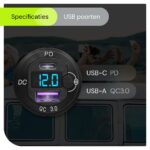 ProRide USB Lader Motor met Voltmeter/Schakelaar – Din Hella – PD/QC3.0 – 12V/24V – Motor USB C lader 2 poorten – Blauw