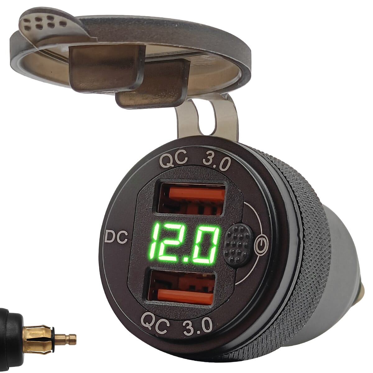 ProRide USB Lader Motor met Voltmeter/Schakelaar – Din Hella – QC3.0 – 12V/24V – Motor USB lader 2 poorten – Groen