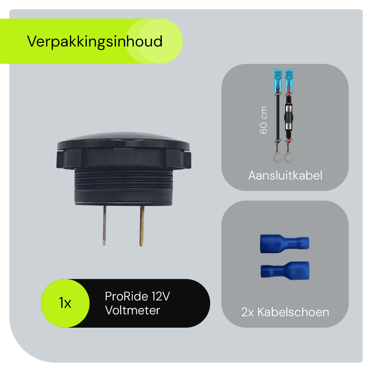 Houd de spanning van je voertuig altijd in de gaten met de betrouwbare en gebruiksvriendelijke ProRide Voltmeter!