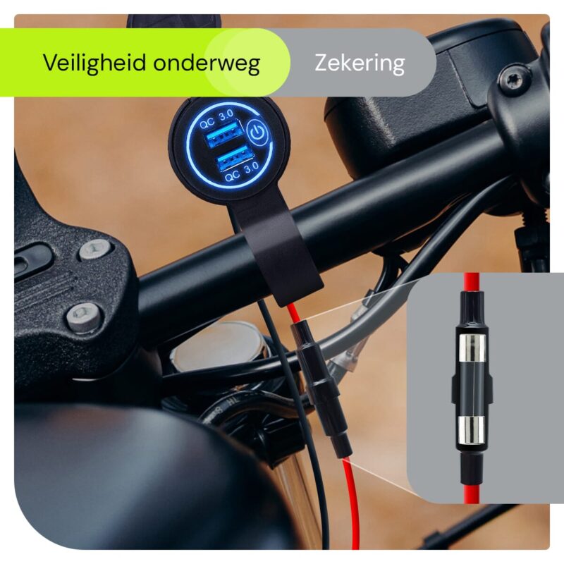 Rust je motor uit met deze 12V USB lader en ervaar het gemak van snelle laadtechnologie en handige bediening, perfect voor de moderne motorrijder.