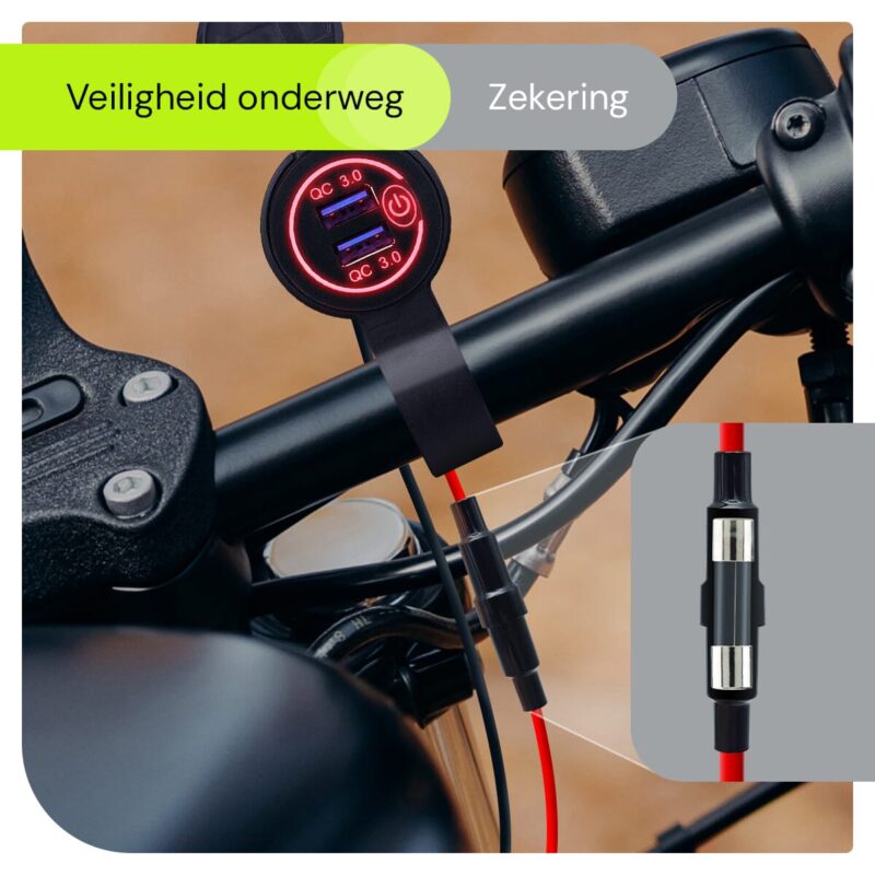 Rust je motor uit met deze 12V USB lader en ervaar het gemak van snelle laadtechnologie en handige bediening, perfect voor de moderne motorrijder.