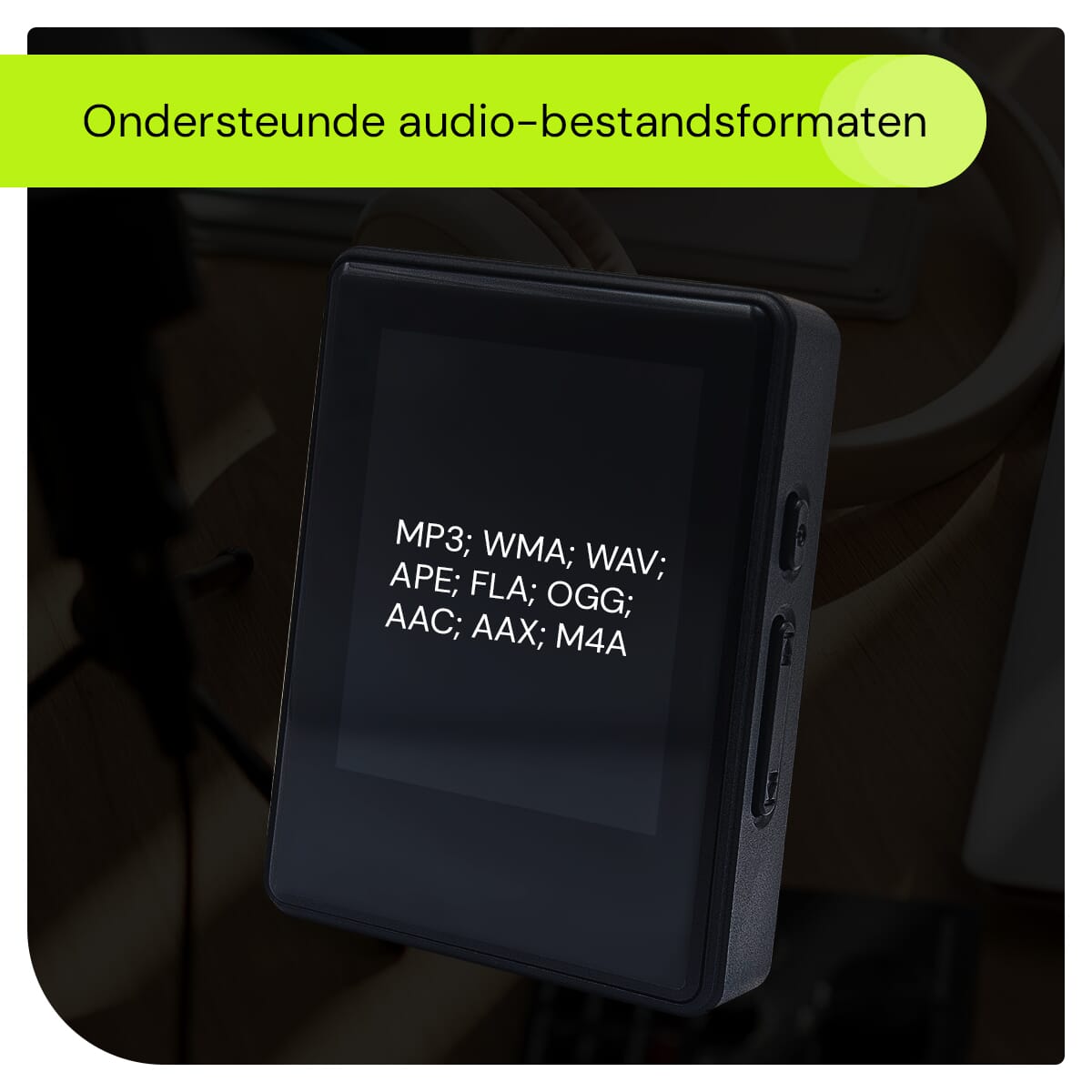 - Ondersteunde Audio-formaten: MP3, WMA, WAV, FLAC, APE